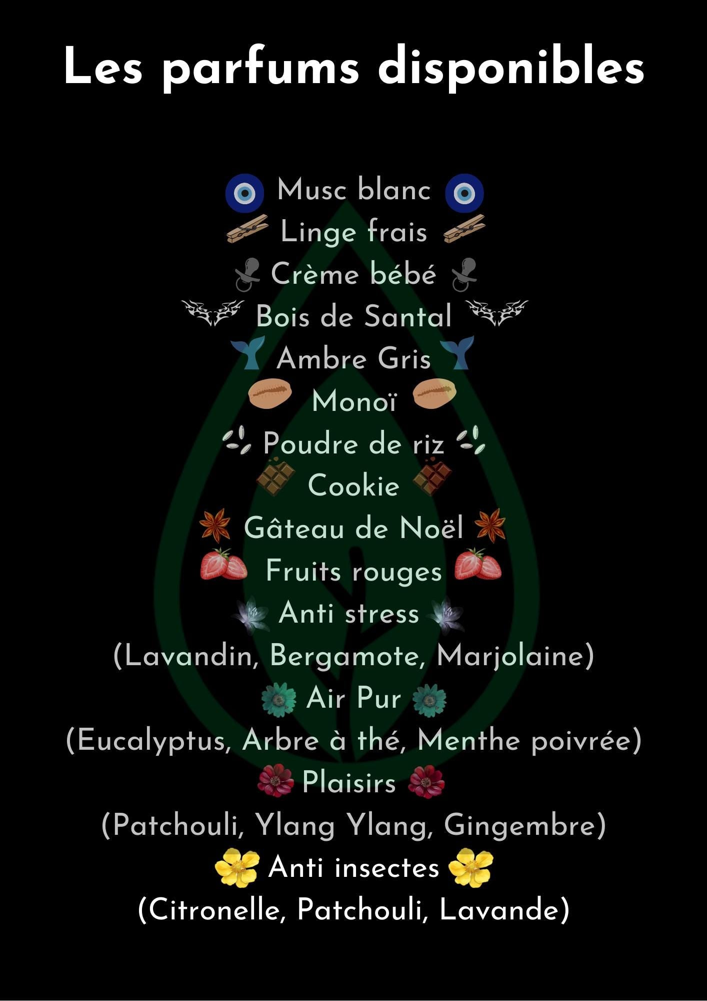 ℹ️ Recharges disponibles : pour prolonger l’utilisation de votre diffuseur, commandez simplement nos recharges parfumées pour voiture. En choisissant "NON" dans l’option Avec le diffuseur ?, vous recevrez 2 tampons parfumés au parfum de votre choix, prêts à remplacer.